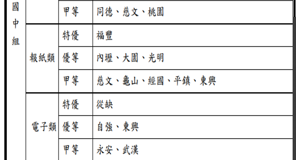 ~本校榮獲 報紙類 優等獎 學校~